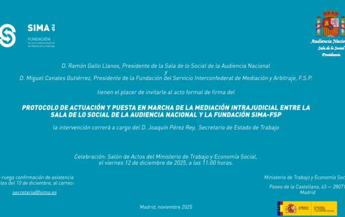 El Servicio Interconfederal de Mediación y Arbitraje FSP (SIMA-FSP), es una fundación paritaria constituida por las Organizaciones Empresariales y Sindicales más representativas en el ámbito estatal (CEOE, CEPYME, CCOO y UGT).
