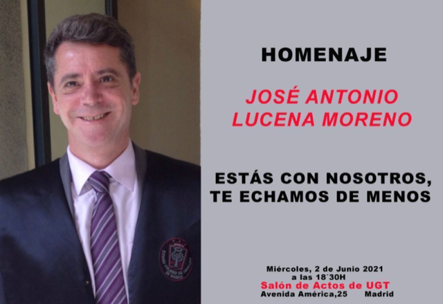 UGT organiza el homenaje al abogado laboralista de la UGT de Madrid, que falleció en abril del año pasado, se celebrará en el Salón de actos de UGT, Avenida de América 25